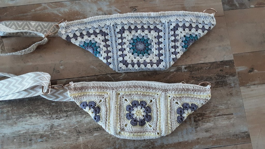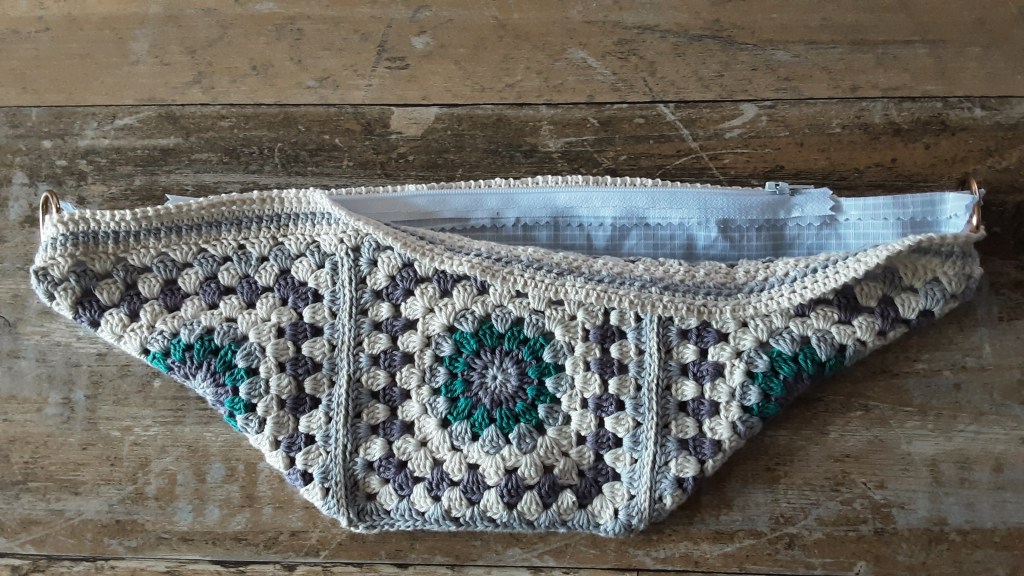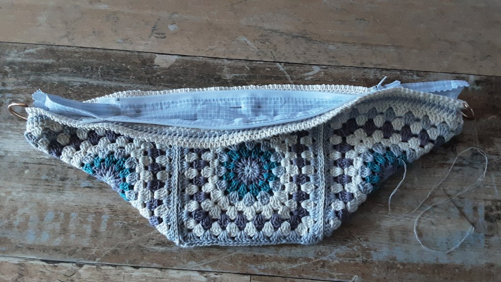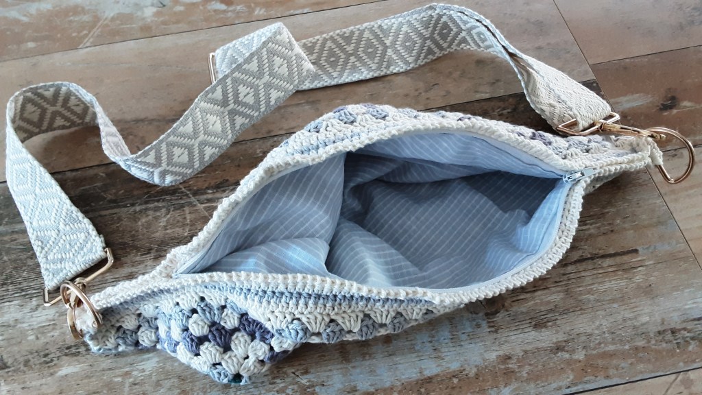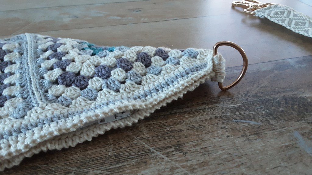 Umhängegurt an den Ösen befestigen und fertig ist meine Crossbody Bag im Häkeldesign und in meinen Lieblingsfarben…