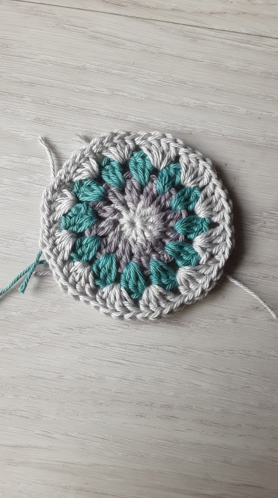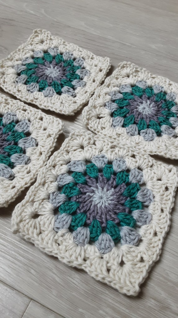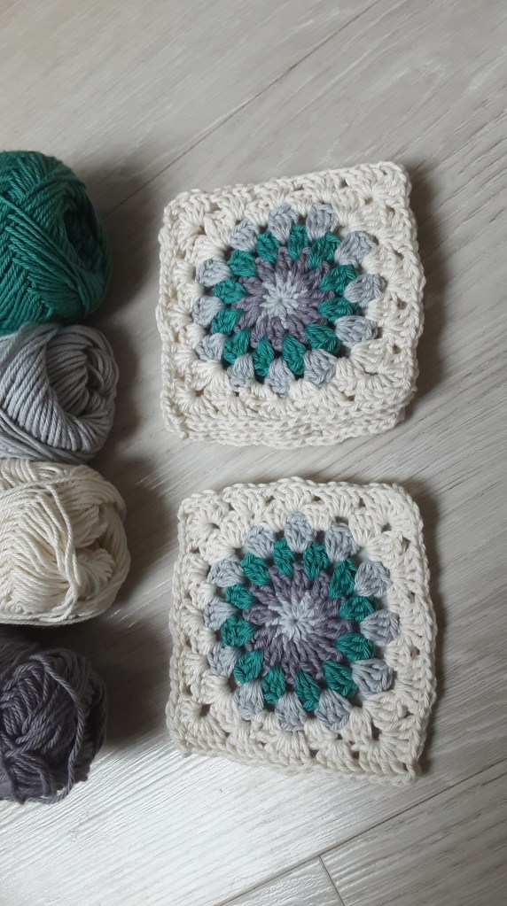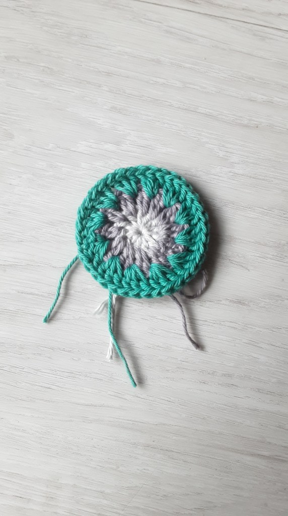 Bei der Farbwahl könnt ihr eurer Fantasie freien Lauf lassen. Ich habe eine 2,75er Häkelnadel verwendet und ein dazu passendes Garn. Mein Granny hat am Ende eine Größe von 13x13cm, perfektes Maß für meine Umhängetasche. Die Größe ist variabel- häkelt einfach eine Runde mehr oder lasst eine Runde weg…